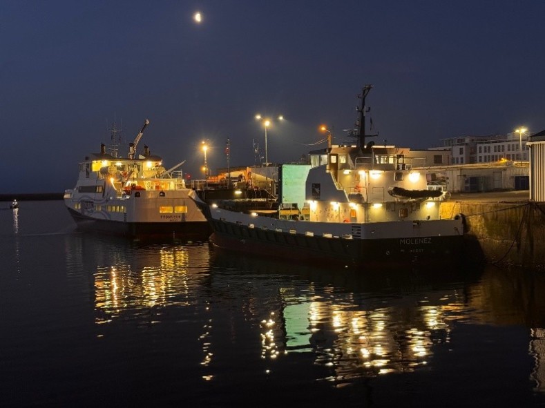 Arrivée à Ouessant (Observation des opérations portuaires (chargement/déchargement), Échanges avec le responsable de quai sur la gestion des flux)