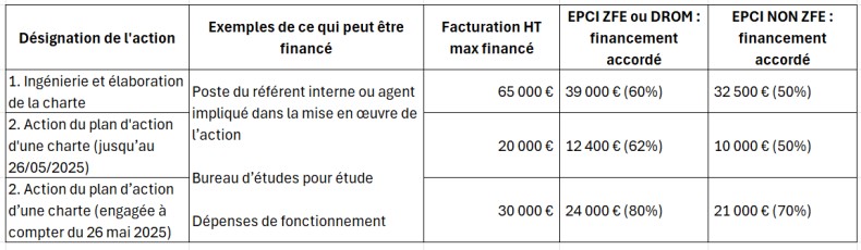 (2.) Financement de l’action du plan d’action d’une charte.