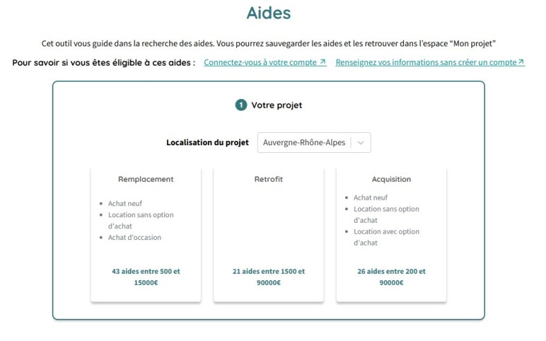 Le site intègre un catalogue de véhicules permettant de comparer les différents types de véhicules et leurs carburants, selon ses besoins spécifiques et les aides correspondantes disponibles.